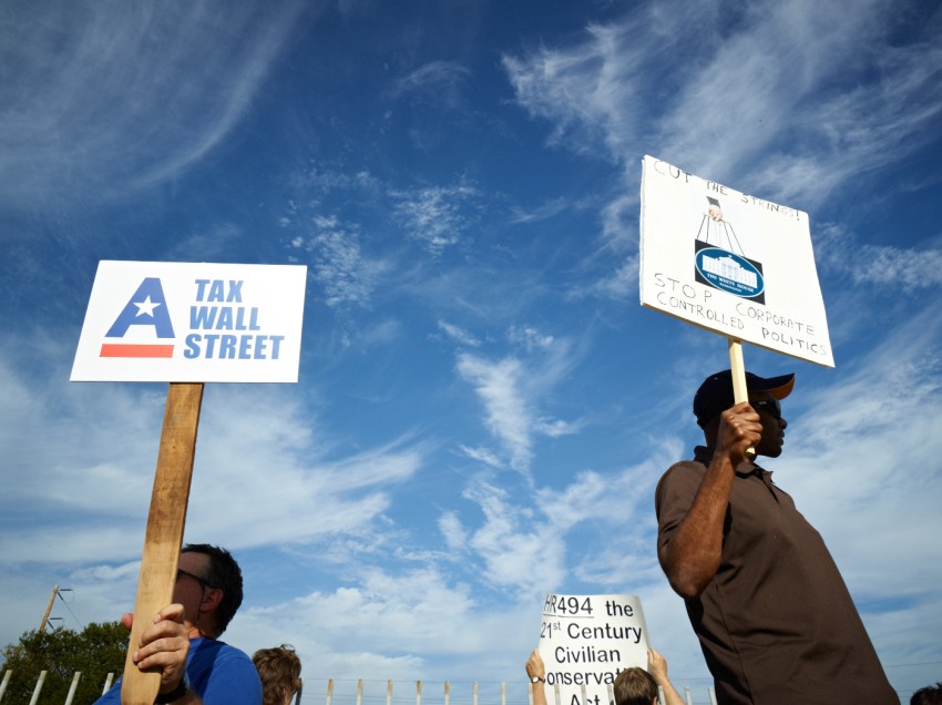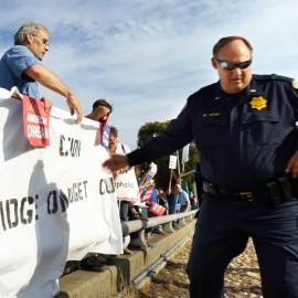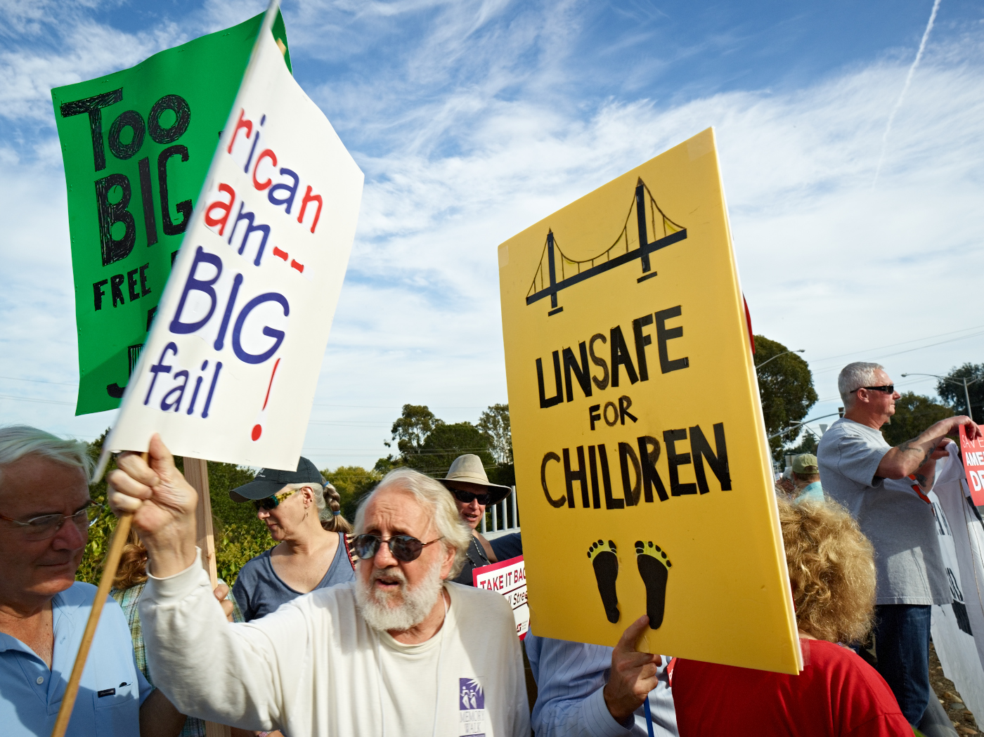 The growing wave of anti Wall Street sentiment, fueled by the Occupy Wall St. movement, hit Silicon Valley on Friday as protesters gathered on a busy overpass of highway 92 in San Mateo.