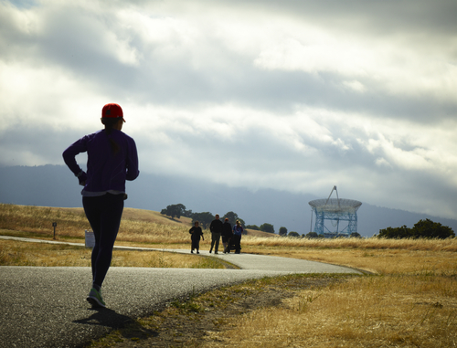 A runner catches their stride as they head towards the giant radio telescope known simply as “The Dish”.